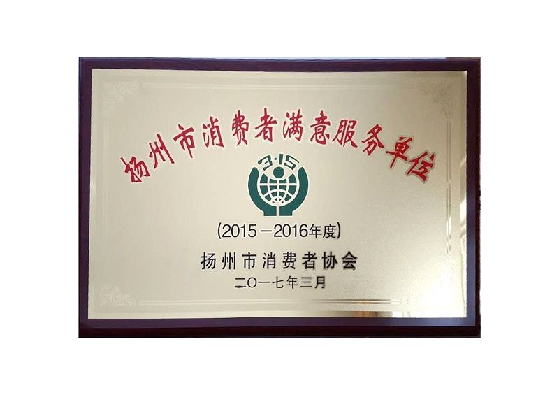 消费者满意服务证书: